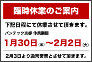 尚、イベント期間中はバンテック京都は臨時休業となりますので、