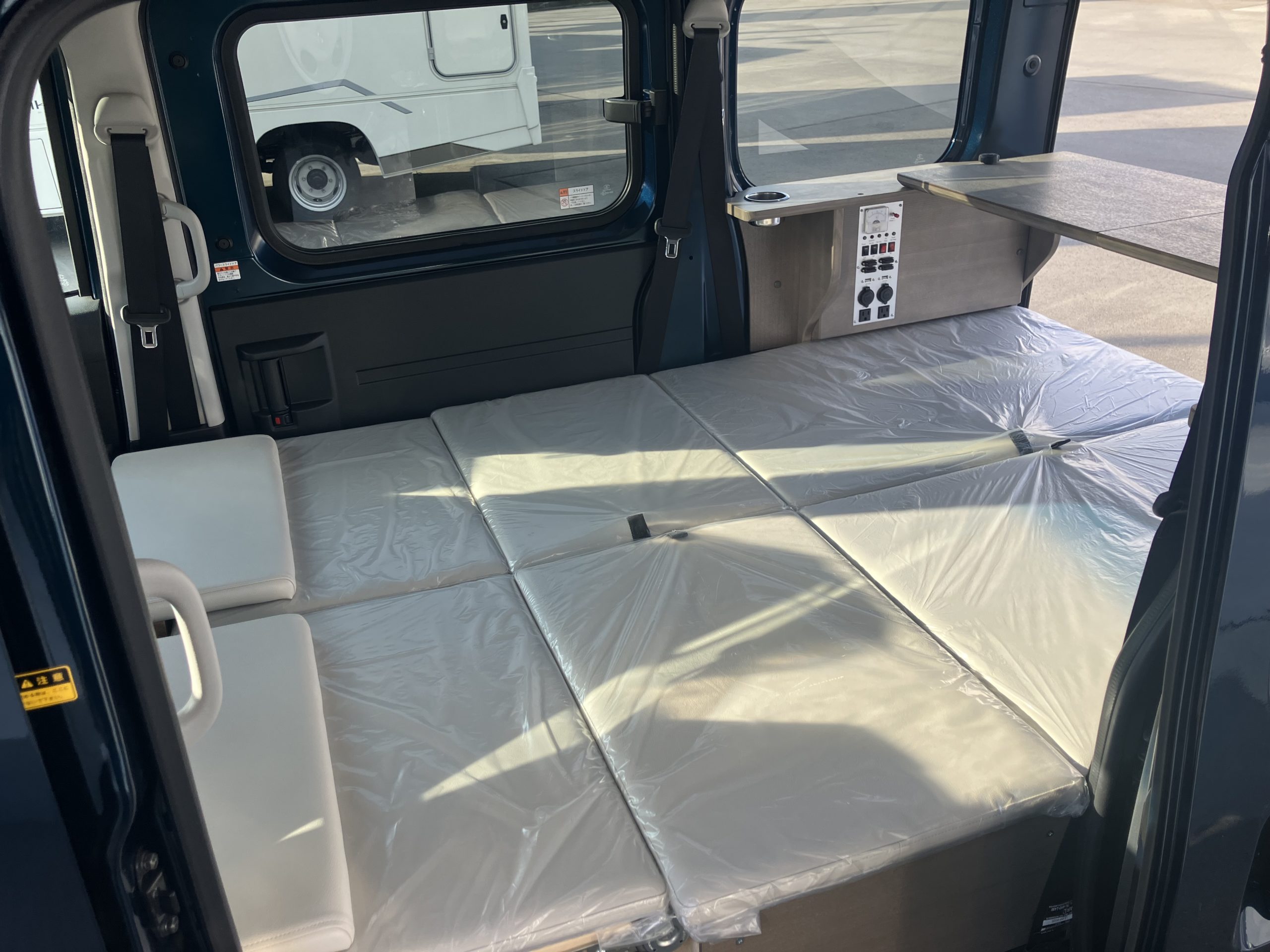 車内でベッド展開をするとこんな感じに!