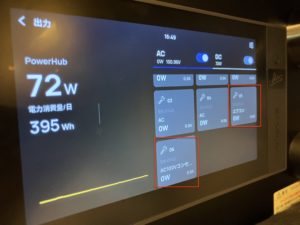 出力をOFFにする際はエアコンや各コンセントでの使用を全てやめた後、出力が0WになってからOFFにするように注意が必要です。