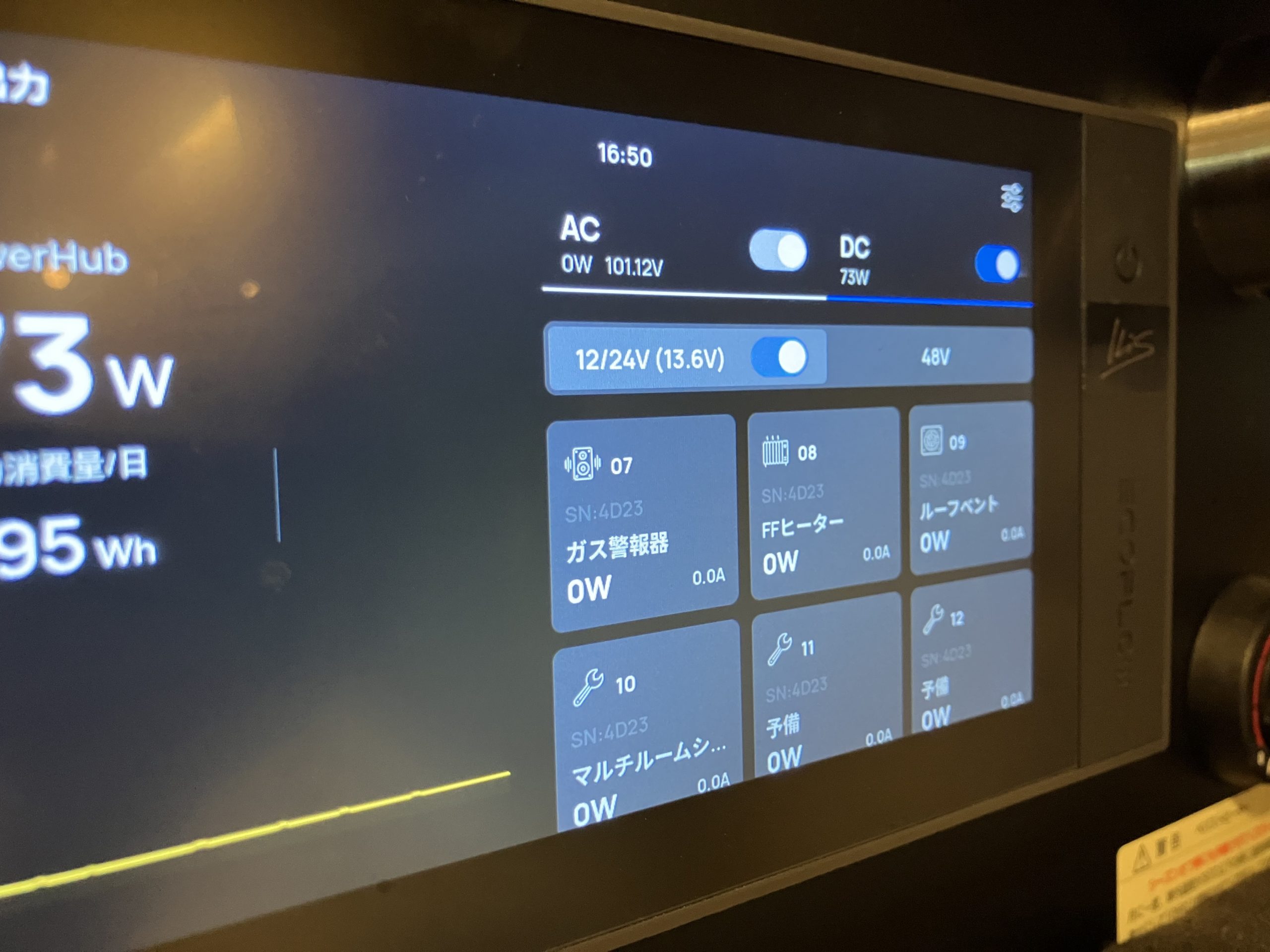 DCのON/OFFボタンと同様に【12/24V】のON/OFFボタンでも出力を一括操作することが可能です。