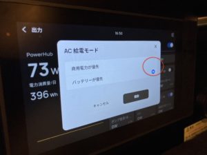 【AC給電モード】の詳細設定に移ると、【商用電力が優先】/【バッテリーが優先】のどちらかを選べるようになっています。