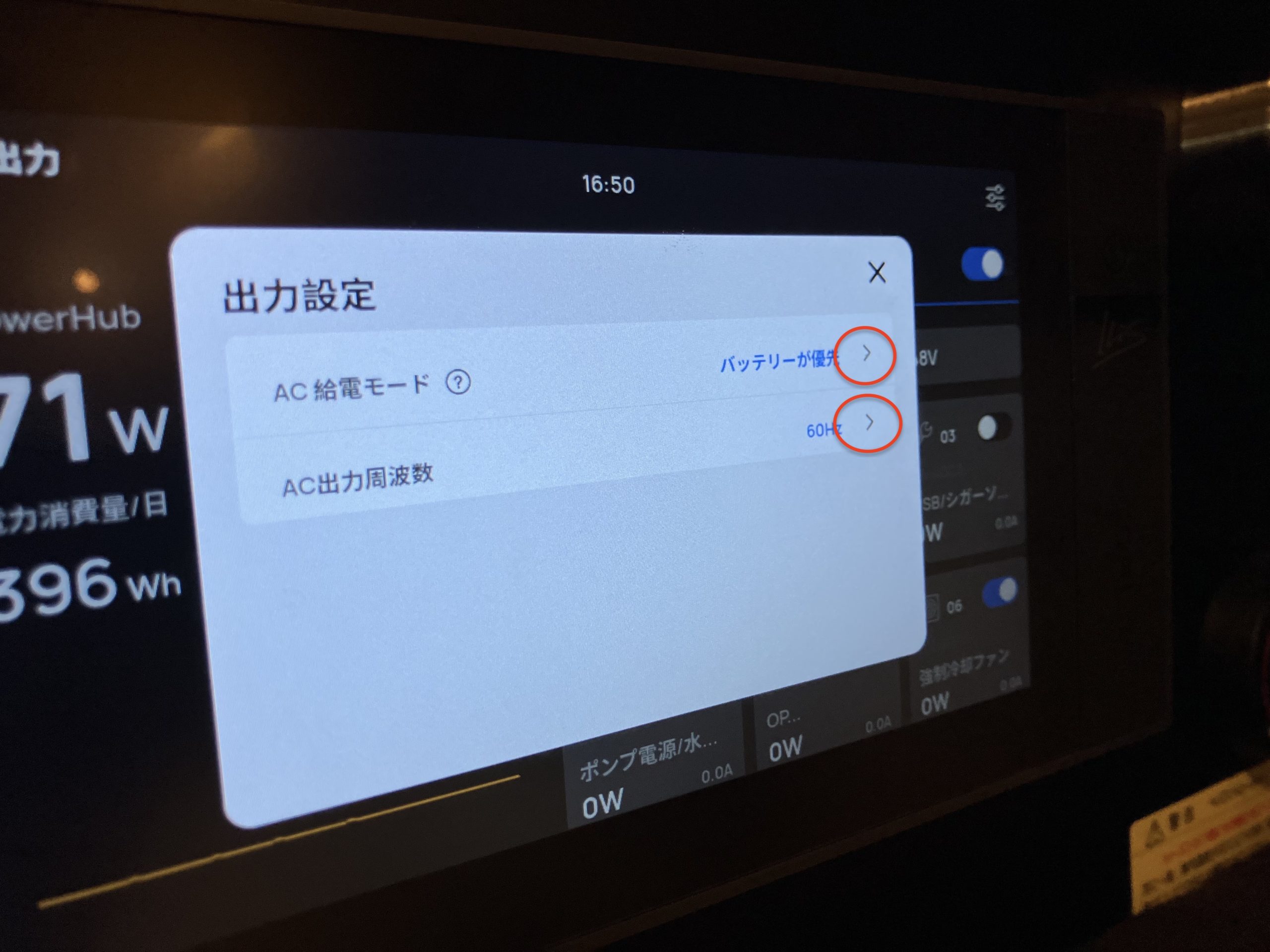 【出力】の詳細画面に移りましたが、写真は更にAC側にフォーカスが当たっている状態です。