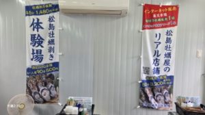 2箇所目は、家族が牡蠣を食べたいというのでスマホで検索し、松島にある”漁師直営牡蠣小屋With小さな釣り堀【松島牡蠣剥き体験場】”にお邪魔しました。