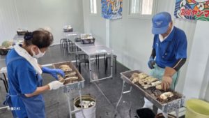 普段は、4人のスタッフさんが🦪を焼いているそうですが、この日は看板娘の”あきちゃん”とイケおじの”つのださん”(先輩、失礼しました。)に焼いて頂きました。