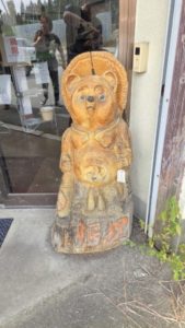 店舗入り口では大きなたぬき像が出迎えてくれます。