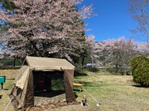 先週、毎年恒例の愛犬とのお花見キャンプに行ったっす。桜は散り初めっす🌸