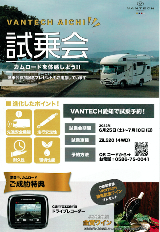 Wタイヤ試乗会 Posted on 2022年7月4日 by デビルミコ Reply みなさま こんにちは。 デビルミコで御座います。 現在バンテック愛知店では新型カムロード の 試乗会を開催しております。 7月10日までとなっております。 乗って触って見て選んで頂けます!! 試乗車はZIL520です。 ぜひ挙ってご来店下さ〜い。