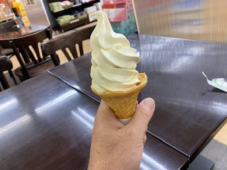途中、蒜山(ひるぜん)高原でソフトクリームを食べ
