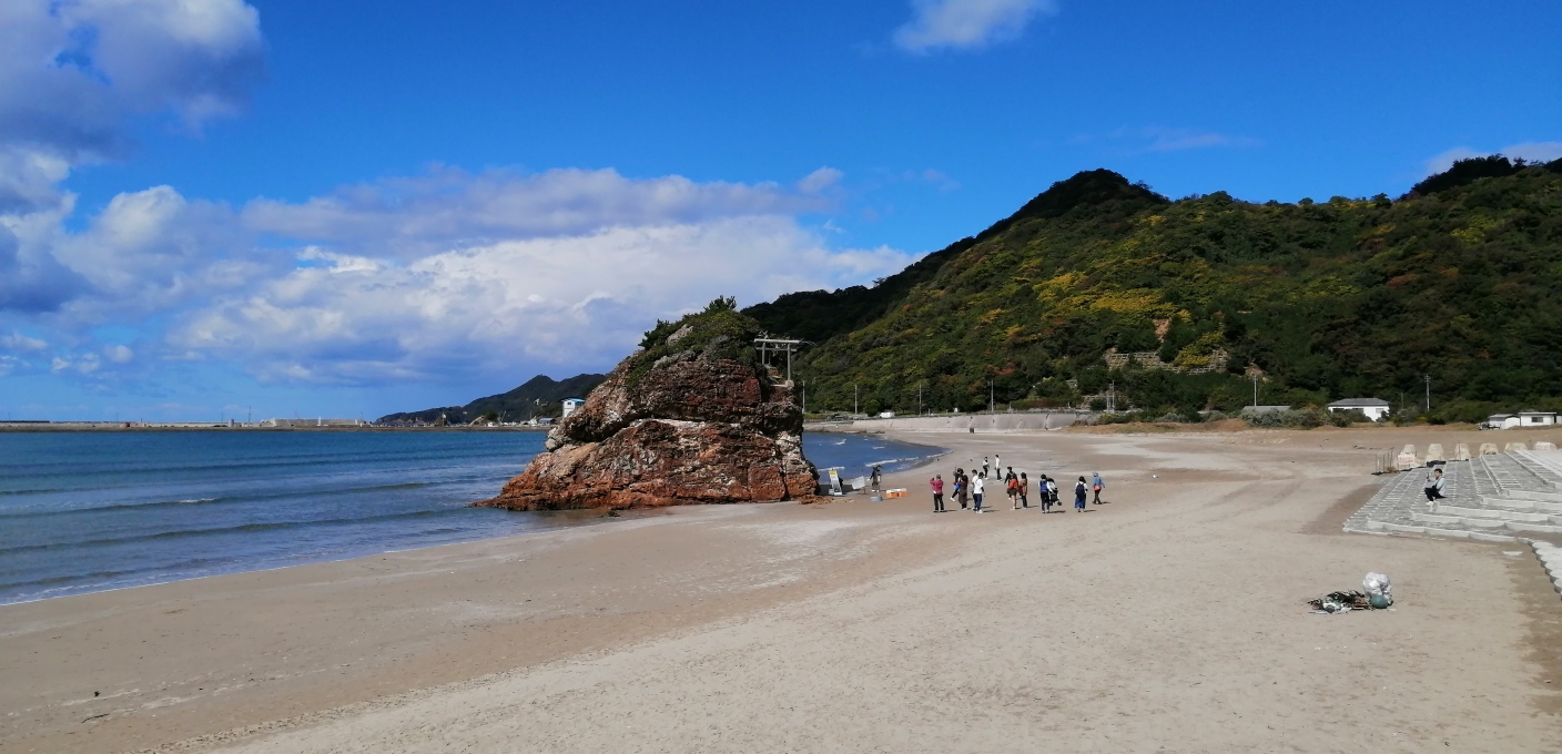 まず、稲佐の浜の社で参拝し、砂を収集します