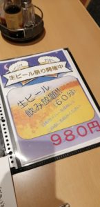 生ビール飲み放題もよかったです