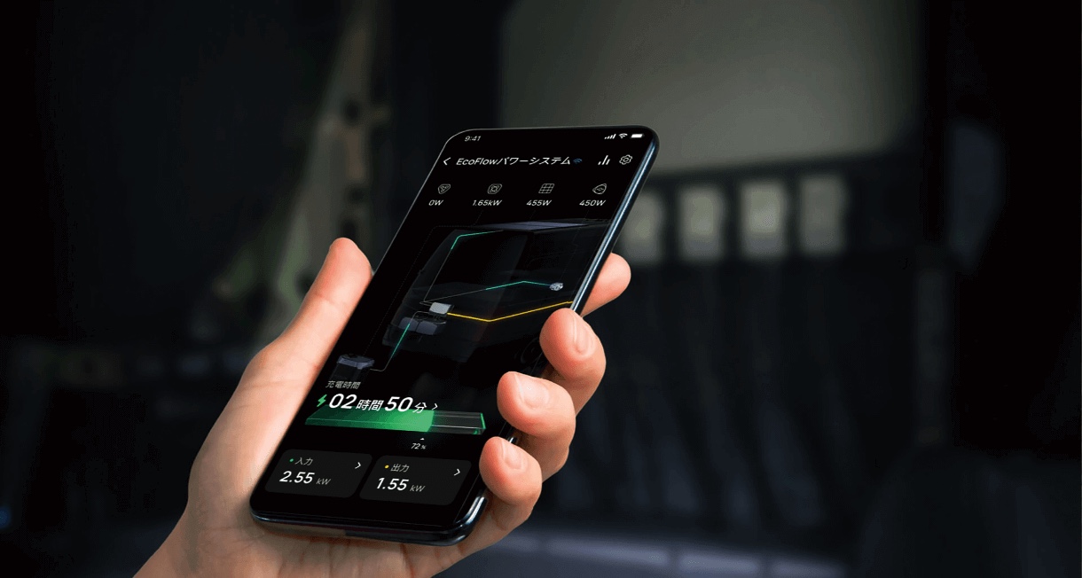 (電気の入力、出力が確認できて、電気がどれだけ使えるか、何時間で満充電になるのか、一目瞭然っす!更にスマホでも確認できて素晴らしい〜っす!)
