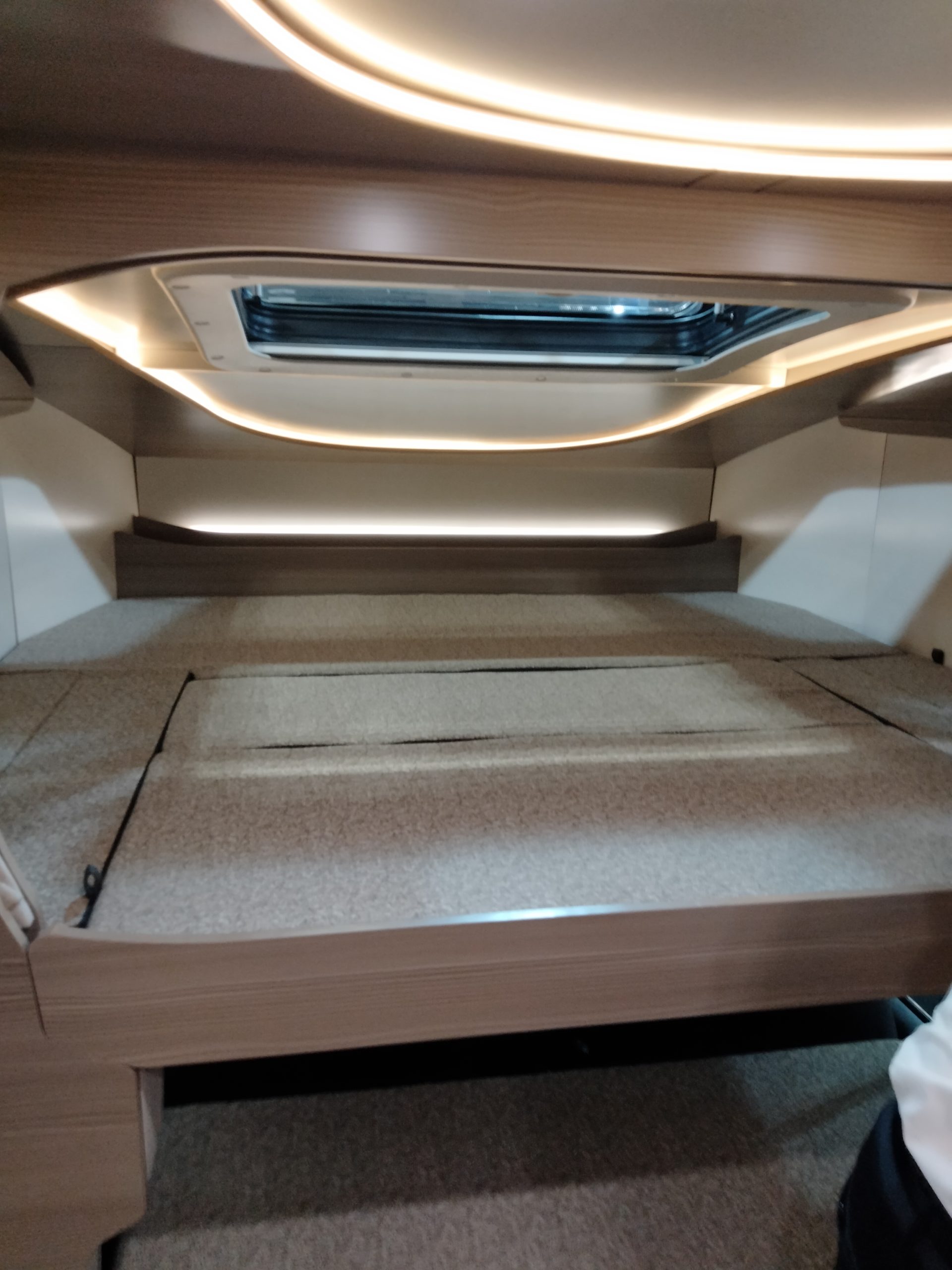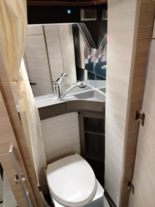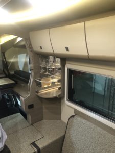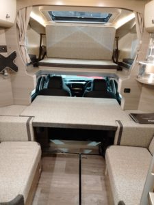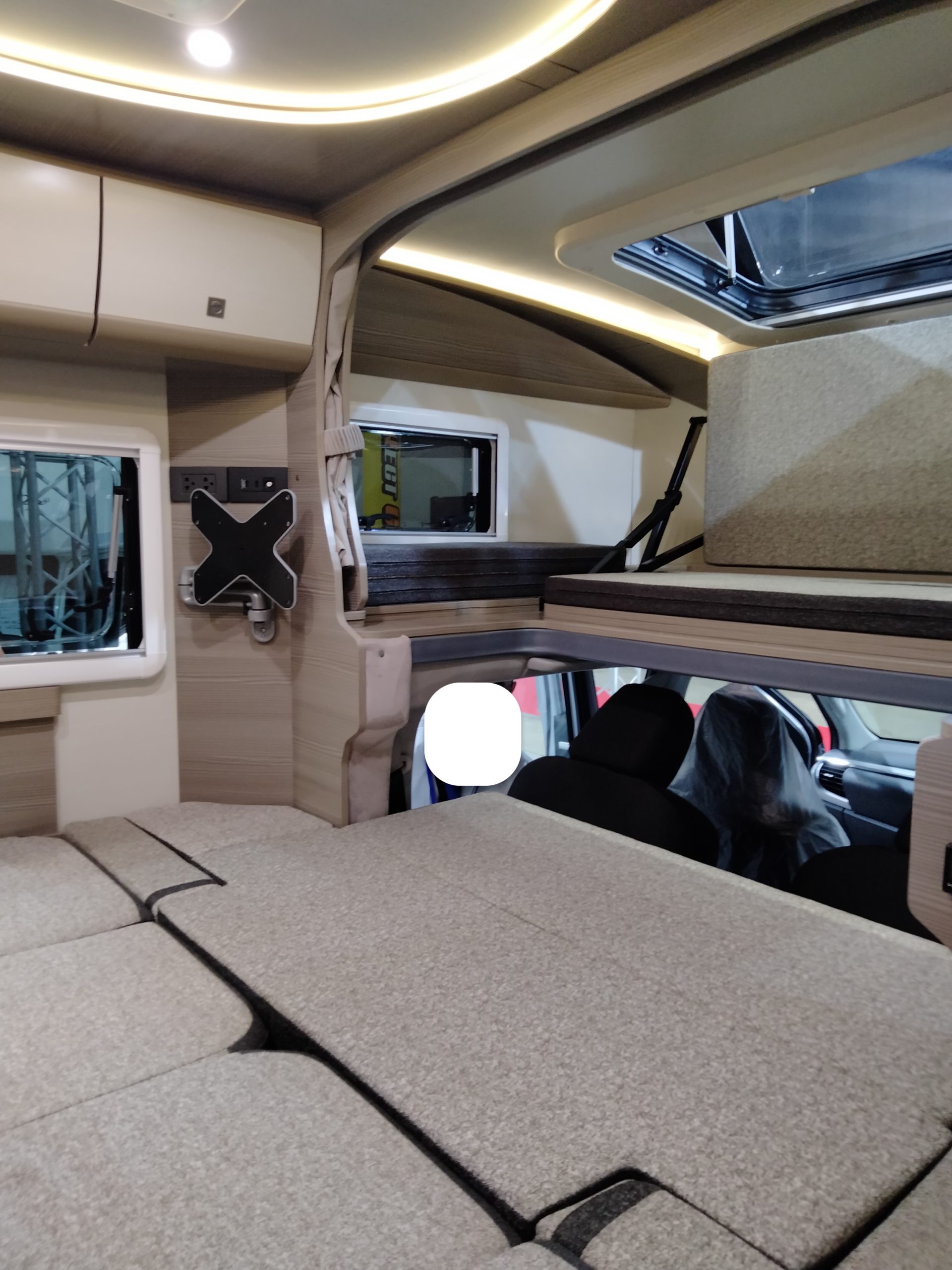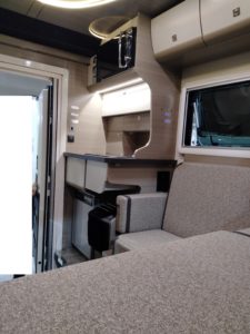 (後部収納とダイネットがウォークスルーっす、荷室をペットルームにして、トイレもここっす!ベットの上にあるのは通路の扉っす!マグネットっす!)