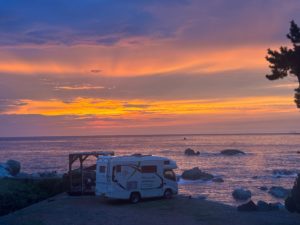 (夏の福井の夕焼けっす、憧れるRVパークっす、黄昏れるっす!)