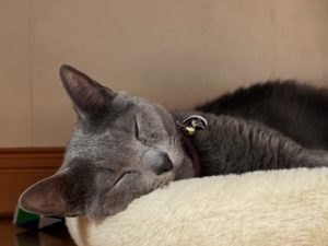 塚本家に居るロシアンブルーの寝顔でブログを締めさせて頂きます。🐈🐾🐾🐾