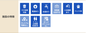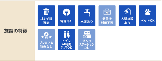 RVパークHP内の施設の特徴表示