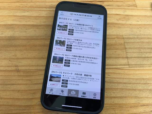 RVパークの検索ですが、バンテックアプリでも探すことが可能です。