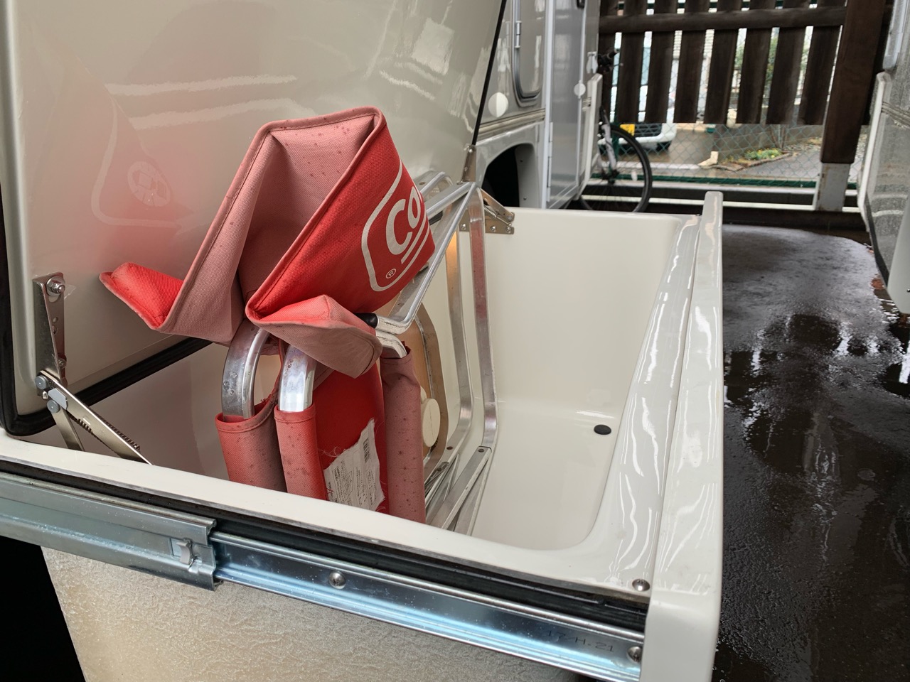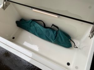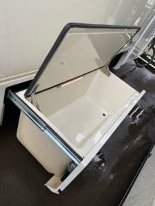 ジルにも車両外部左側にスライドする大きな収納庫(LED照明付き)があります。