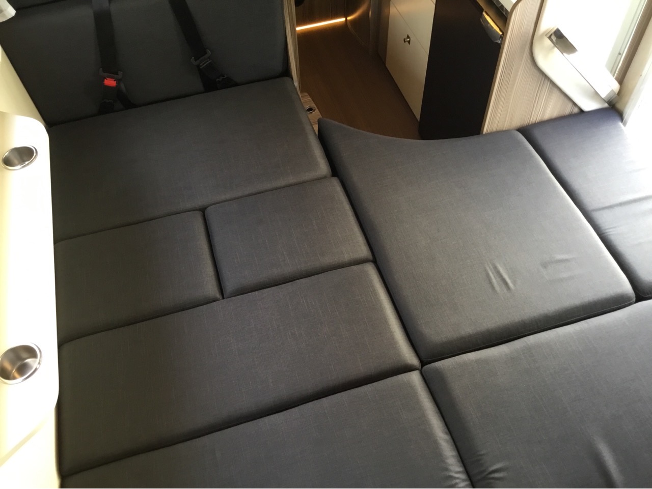 せっかくなので、テーブルを下げてフルフラットにしてみました。