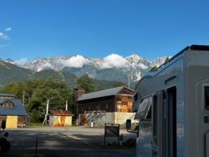 写真に関してのコメント:白馬 倉下の湯にて、初めての白馬を念願のキャンピングカー「CORDE Leaves」で行った時の写真です。