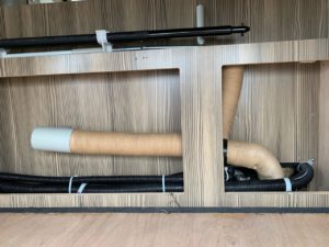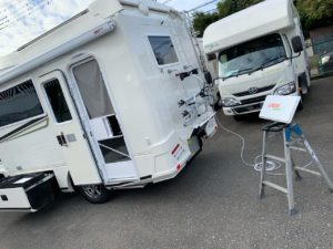 このお客様は予めBSアンテナケーブルを車体に貫通させています。